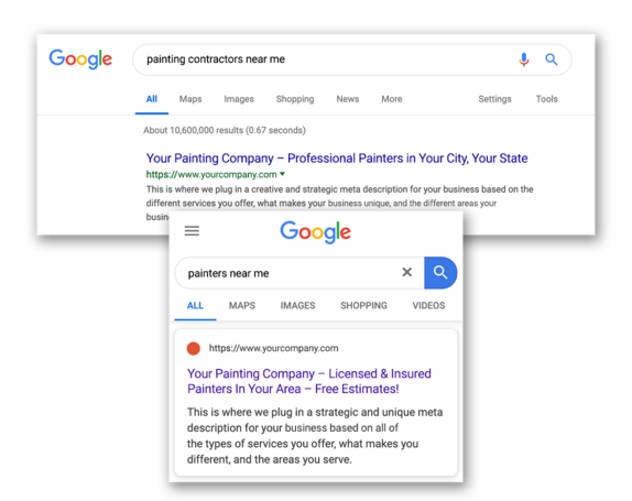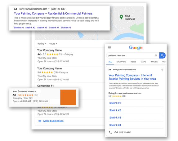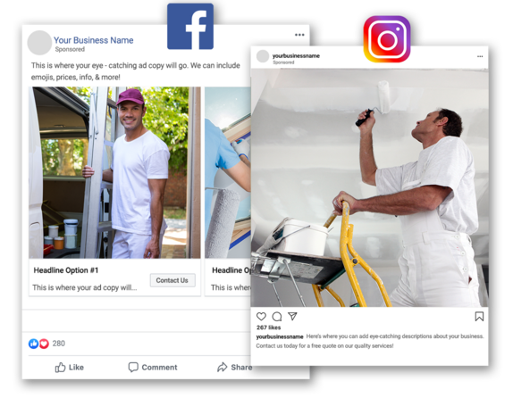 Utilizing Facebook’s advertising platform, we can tap into many different audiences of people on Facebook and Instagram. Social Media advertising has the unique ability to not only target the right Painting customer in the area of your choice, but it also allows social interaction between a customer and the Painting Business. People can comment, like, and share your post with other friends and family. Facebook also has the ability to use video and image ads to engage potential customers. Your customers are Facebook and Instagram, and we’ll use these platforms to reach them directly with your messaging.